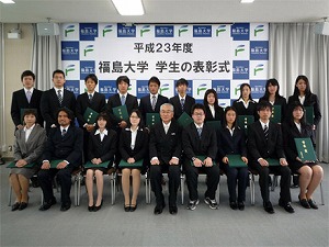清水麻衣さんが「平成23年度 飯塚毅賞」を受賞しました。飯塚毅賞は最も優秀な卒業論文を執筆した学生に対して、福島大学経済学会による審査を経て信陵同窓会より授与されるものです。本年は3名の受賞となり、卒業祝賀会にて表彰されました。