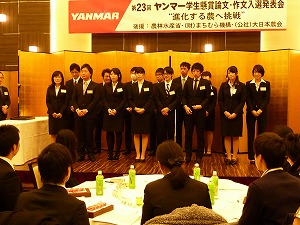 ヤンマー株式会社が主催(後援:農林水産省、財団法人都市農山漁村交流活性化機構、公益社団法人大日本農会)する「第23回ヤンマー学生懸賞論文」にて、細越美智さん、